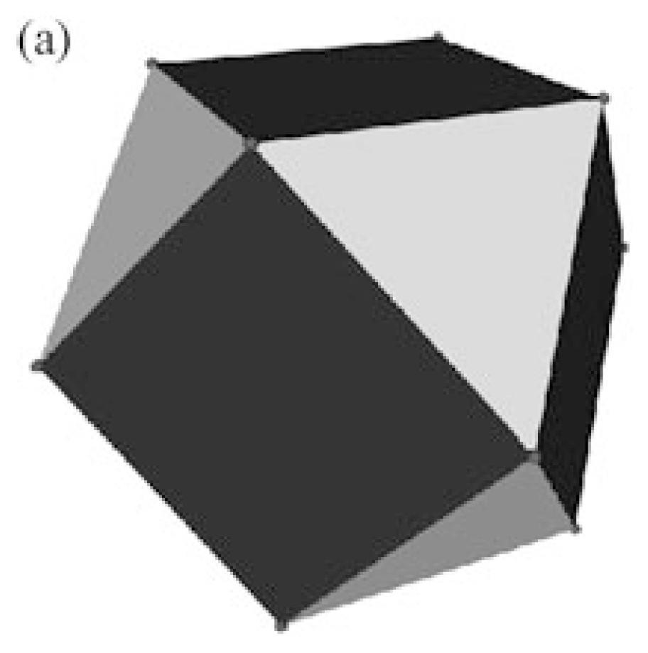 - (a) Moretti’s cuboctahedron, (b) the cuboctahedron as the convex hull of Béziau’s stellar rhombic dodecahedron, (c) the cuboctahedron as the dual polyhedron of the rhombic dodecahedron