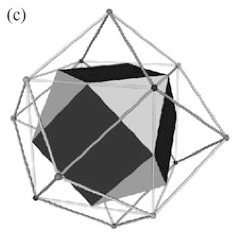 - (a) Moretti’s cuboctahedron, (b) the cuboctahedron as the convex hull of Béziau’s stellar rhombic dodecahedron, (c) the cuboctahedron as the dual polyhedron of the rhombic dodecahedron
