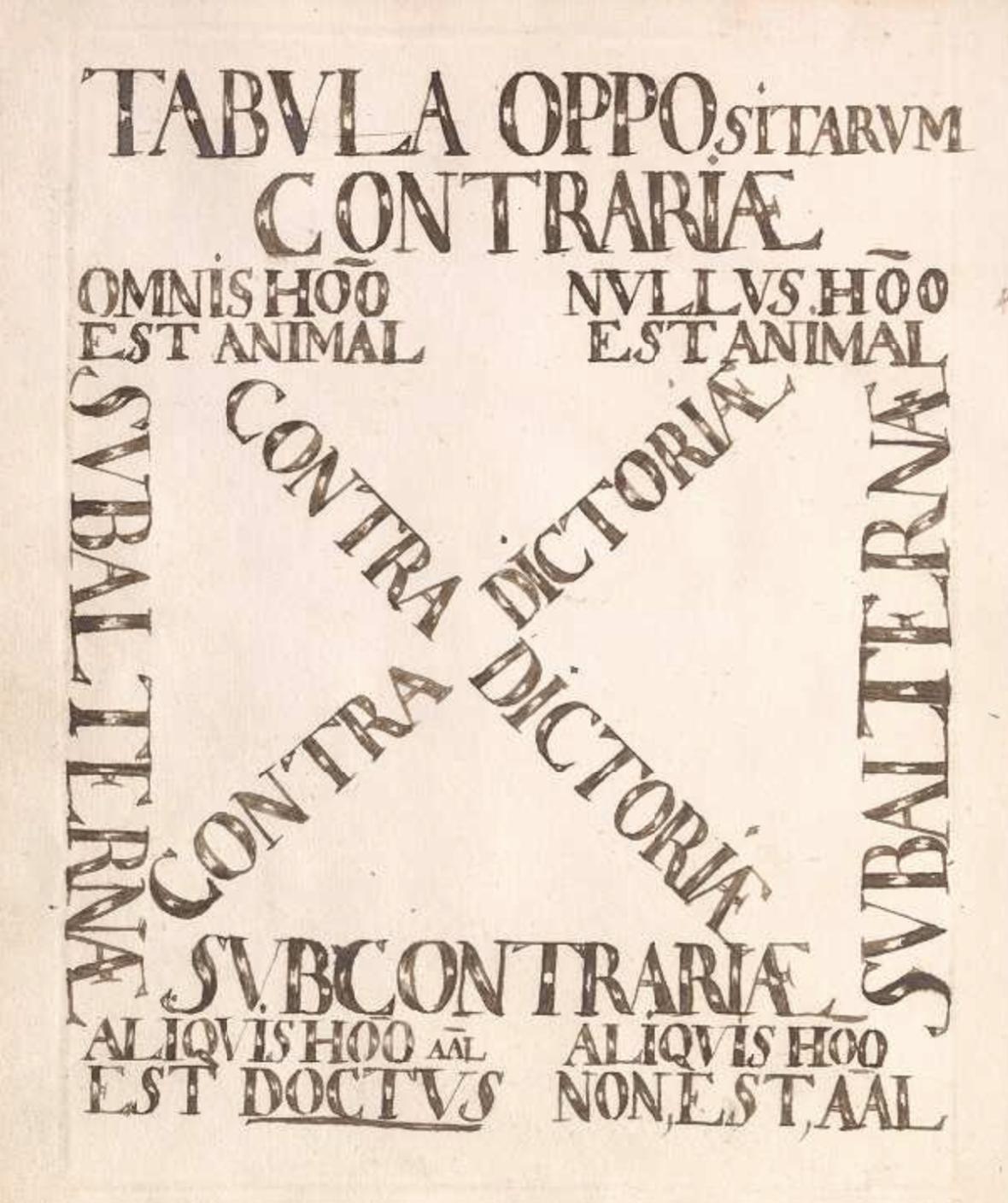 - The predicate of the I-corner is 'doctus', whereas the predicate of the three other corners is 'animal'. However, this mistake seems to have been corrected: note that 'doctus' is underlined and 'a[nim]al' is written above it.