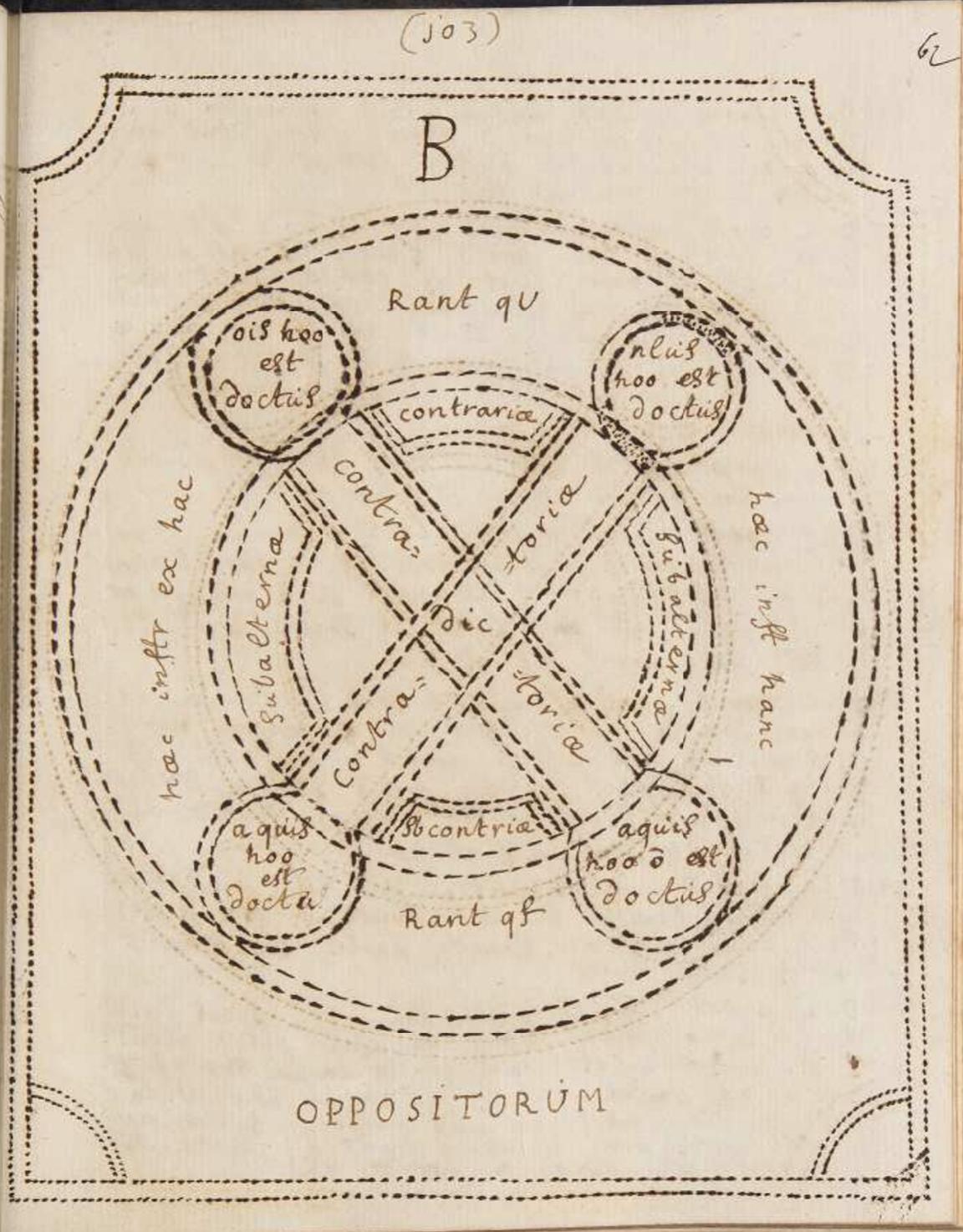 - On fol. 61v of the same manuscript there is another diagram, with caption "TABULAE OPPOSITORUM. A".